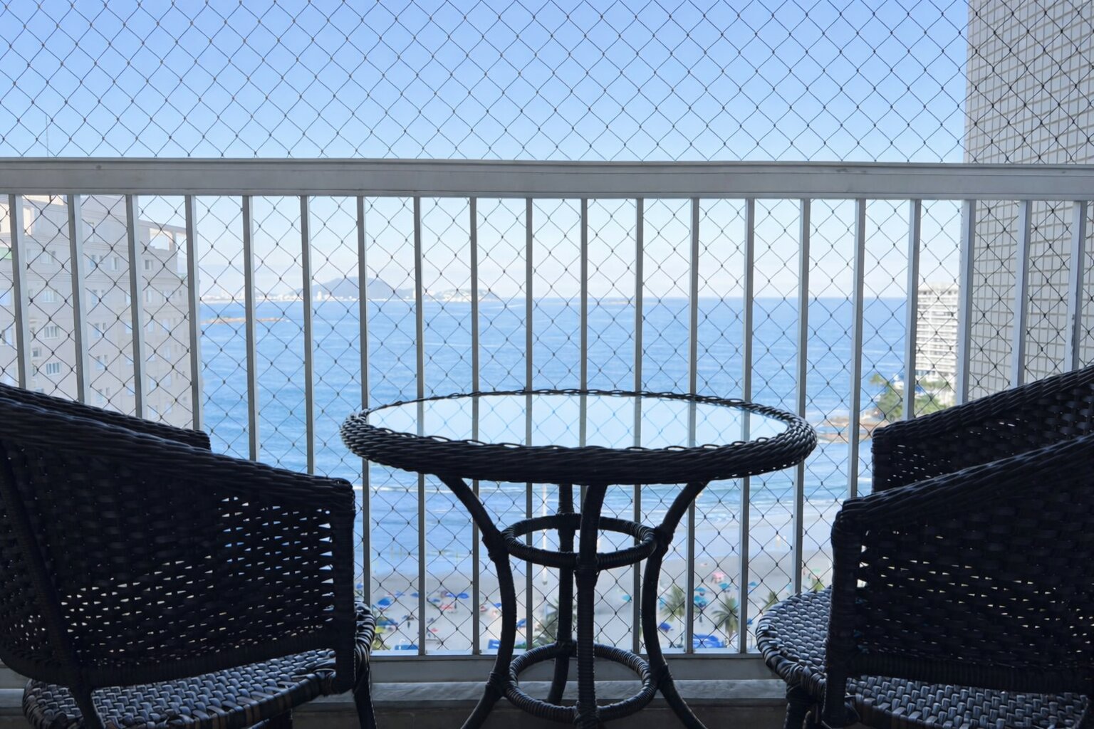 A unidade fica de frente para a Praia das Astúrias (15m de distância)
